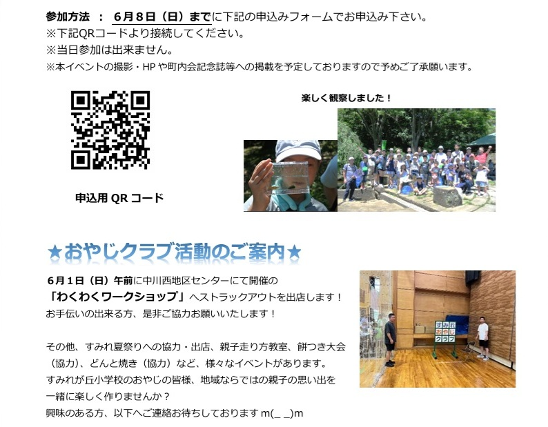 対象 :すみれが丘小学校児童とその保護者(子供だけでの参加は出来ません)
